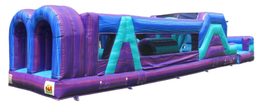 La Obstáculos violeta es una carrera de obstáculos inflable de 35 pies diseñada para eventos, fiestas y actividades recreativas. Se puede usar seca o con piscina. Ideal para niños y adultos. Diseño llamativo y colores vibrantes. Montaje rápido. Seguridad reforzada.