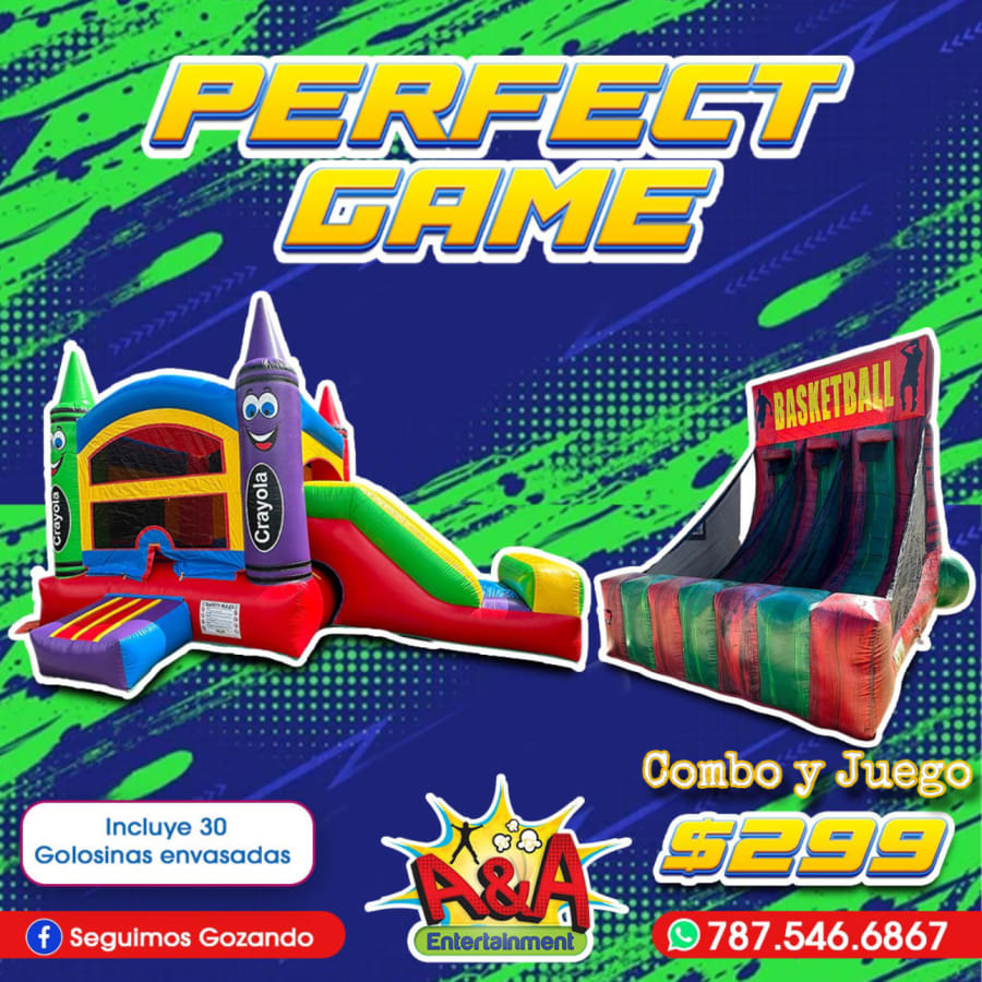 ¿Está listo para darle un toque de diversión y emoción a su evento? ¡No busques más que nuestro paquete Perfect Game ! Esta oferta exclusiva está diseñada para brindar alegría y competencia a su reunión, asegurando que todos la pasen genial. Ya sea que esté organizando una fiesta de cumpleaños, un evento corporativo o una reunión familiar, nuestro paquete está diseñado para satisfacer sus necesidades y hacer que su evento sea memorable.
